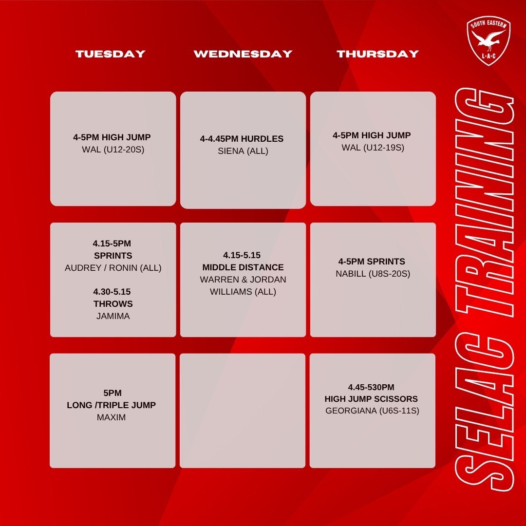 Note: throws training has been moved to Tuesday 4:30pm with Jemima from 21/10/25. New graphic updated 22/10/25.